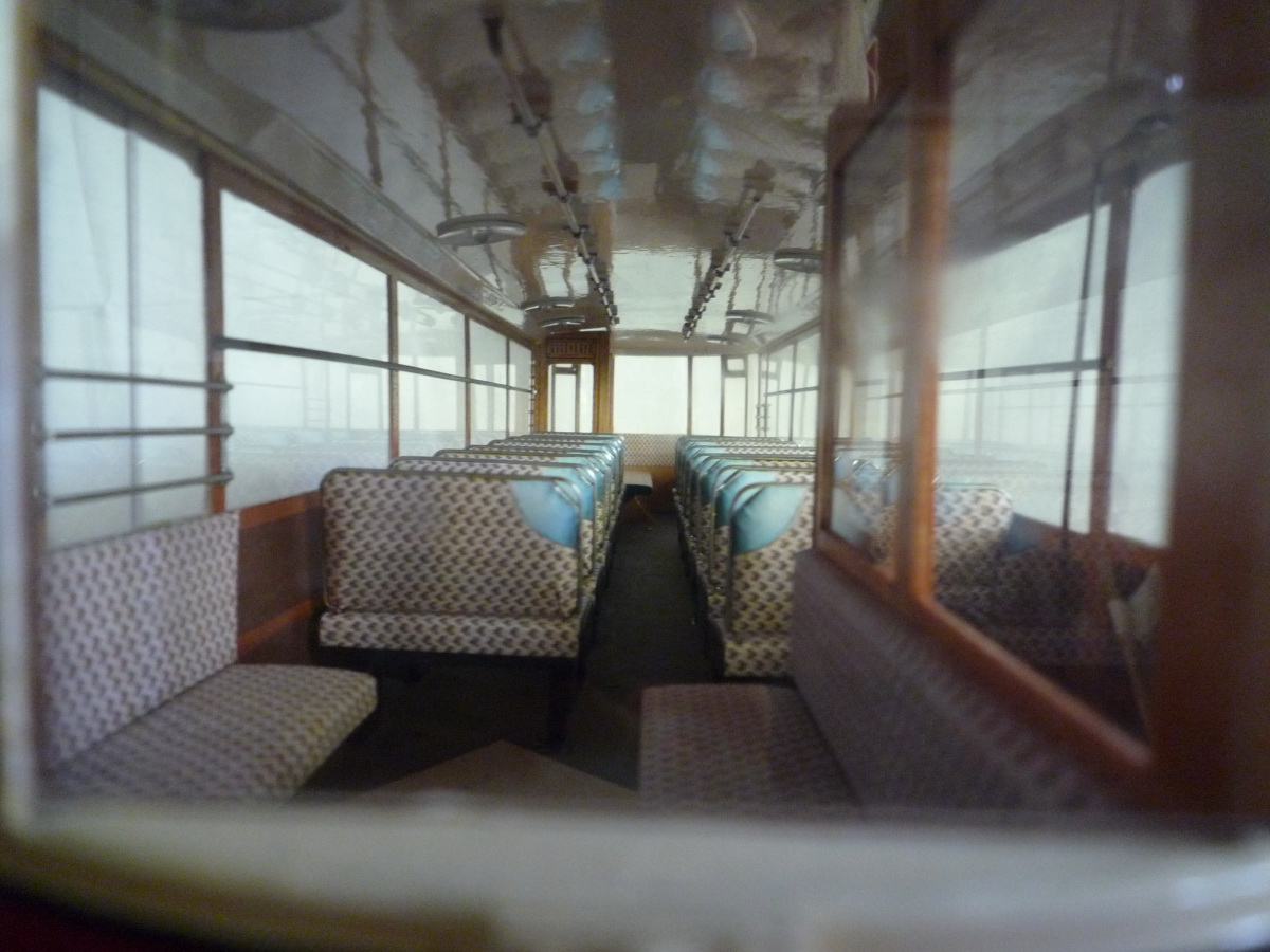 Interior shot of 1884 showing photographically produced paper upholstery on cast resin seats . . . |