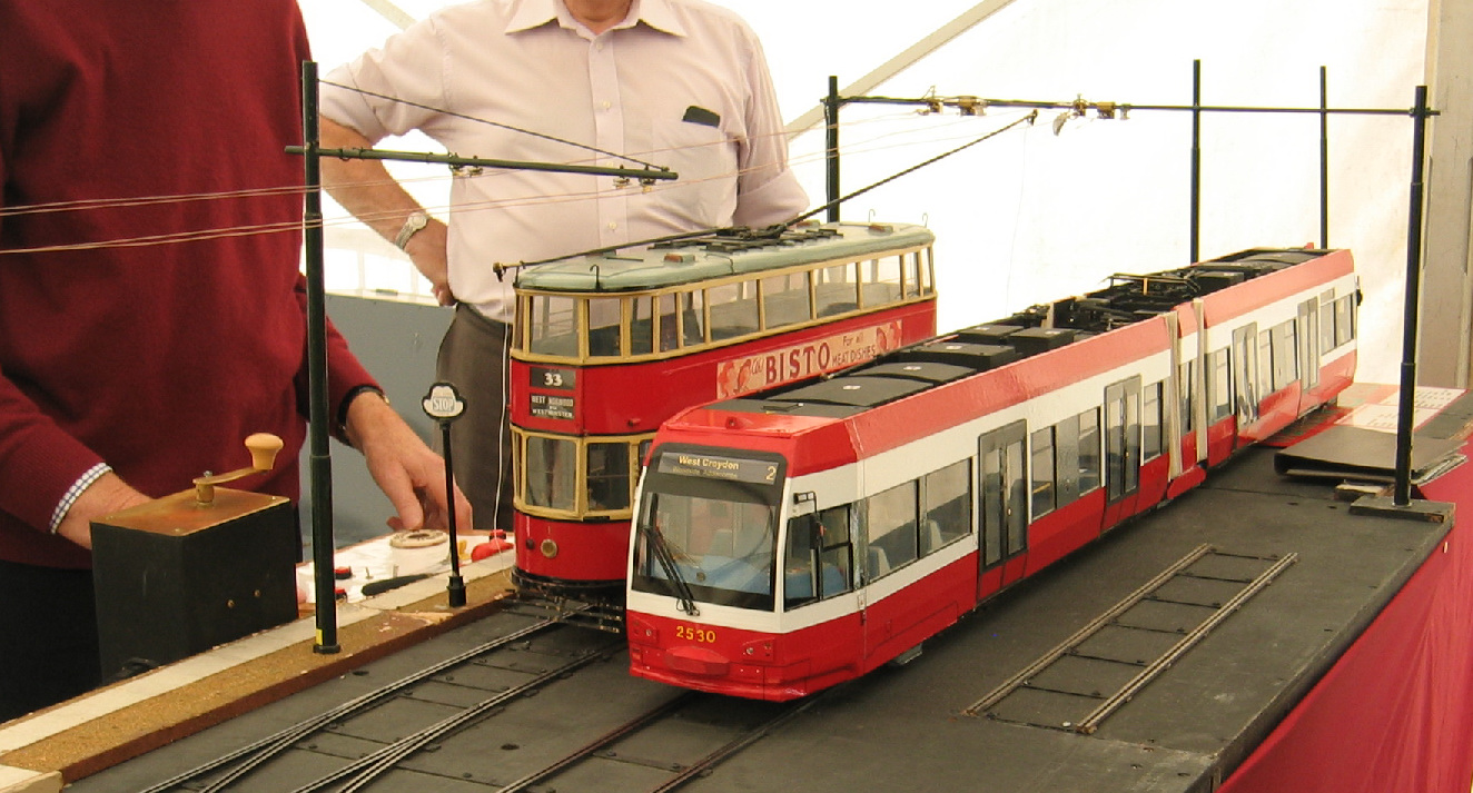 Both these model tramcars were built by Tony Hildreth, with the logistics of transporting the two metre long Croydon Tramlink car between layouts
