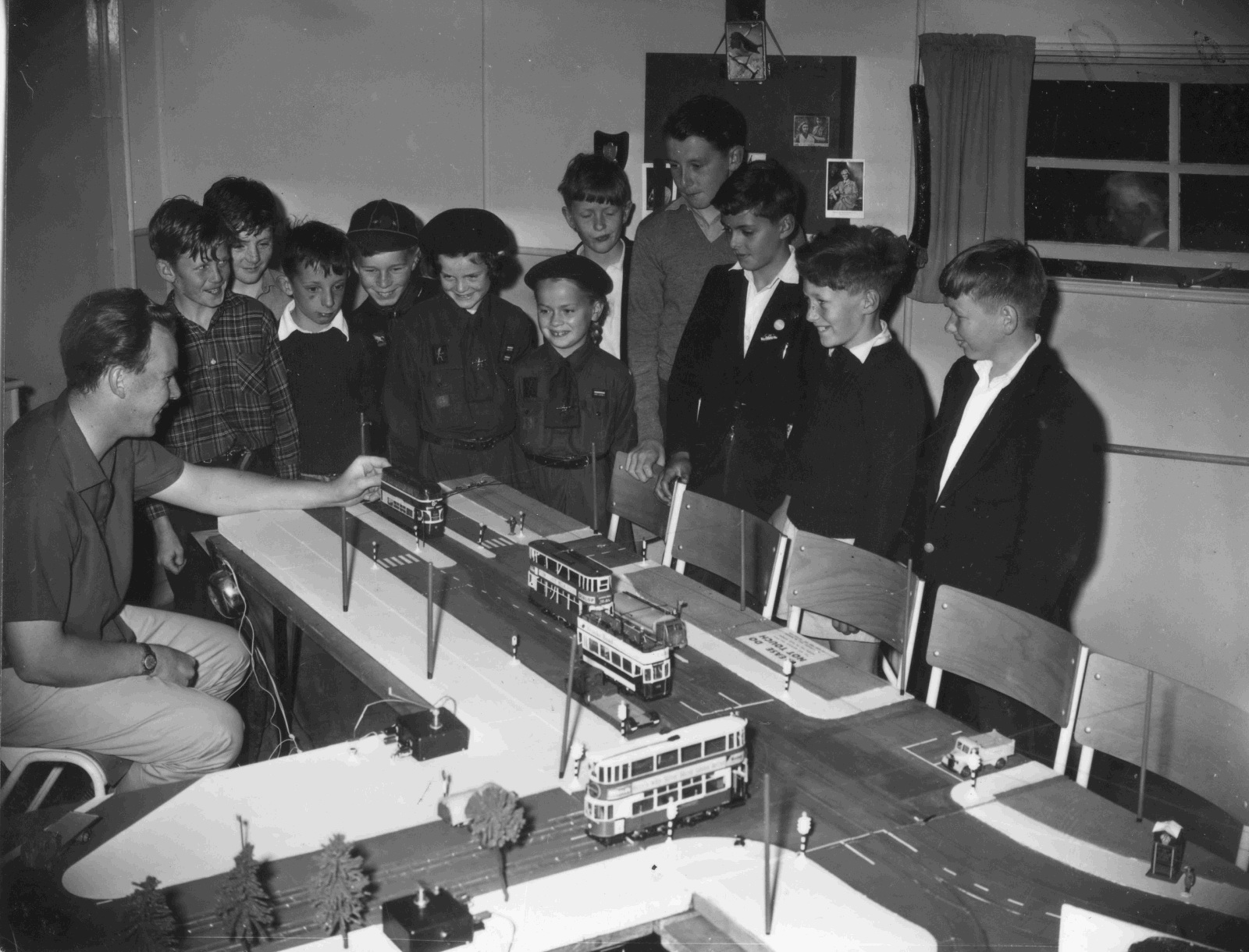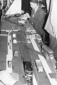 Powered from the overhead, steered by a sprung arm against the kerb. Built by Terry Russell. |