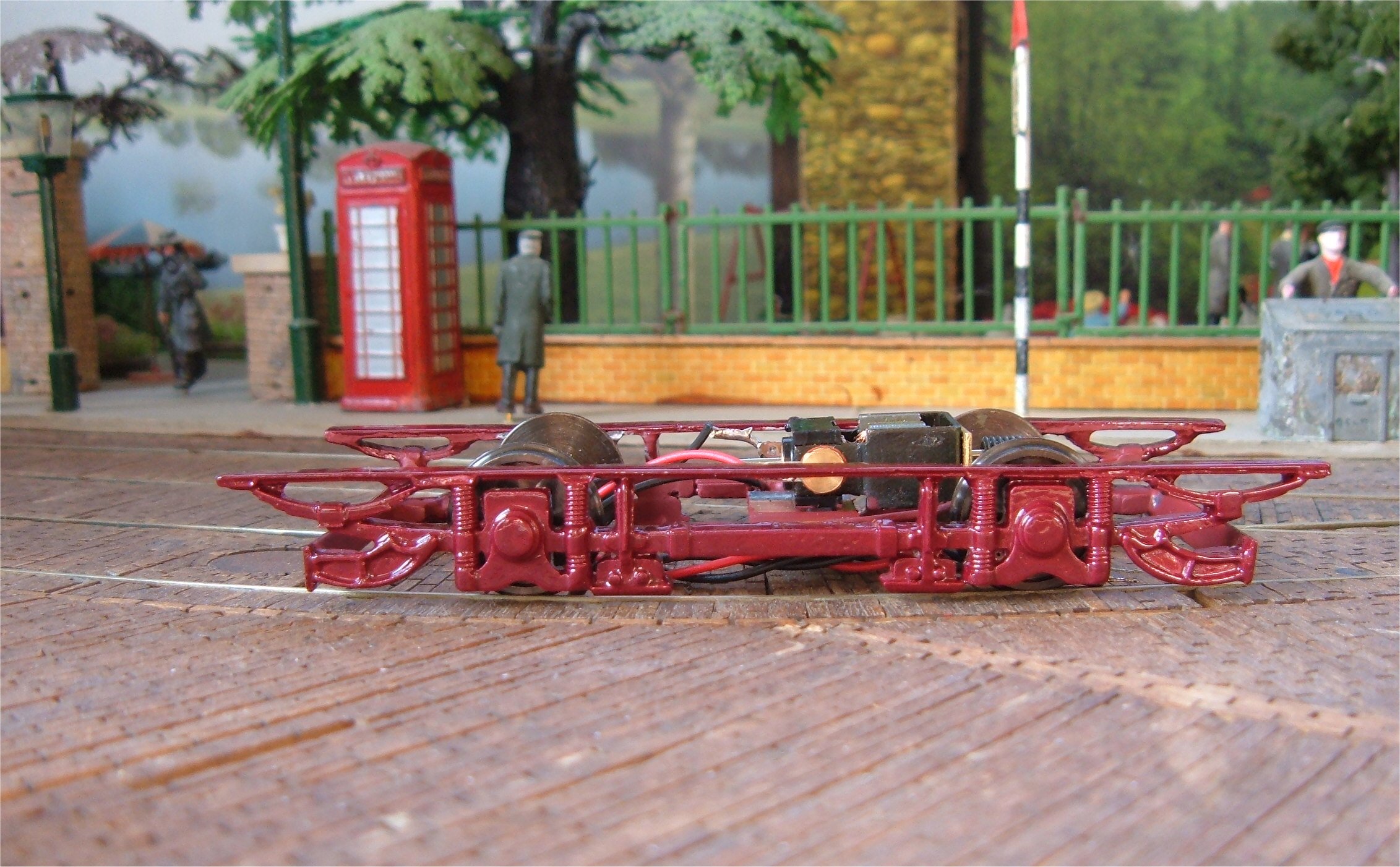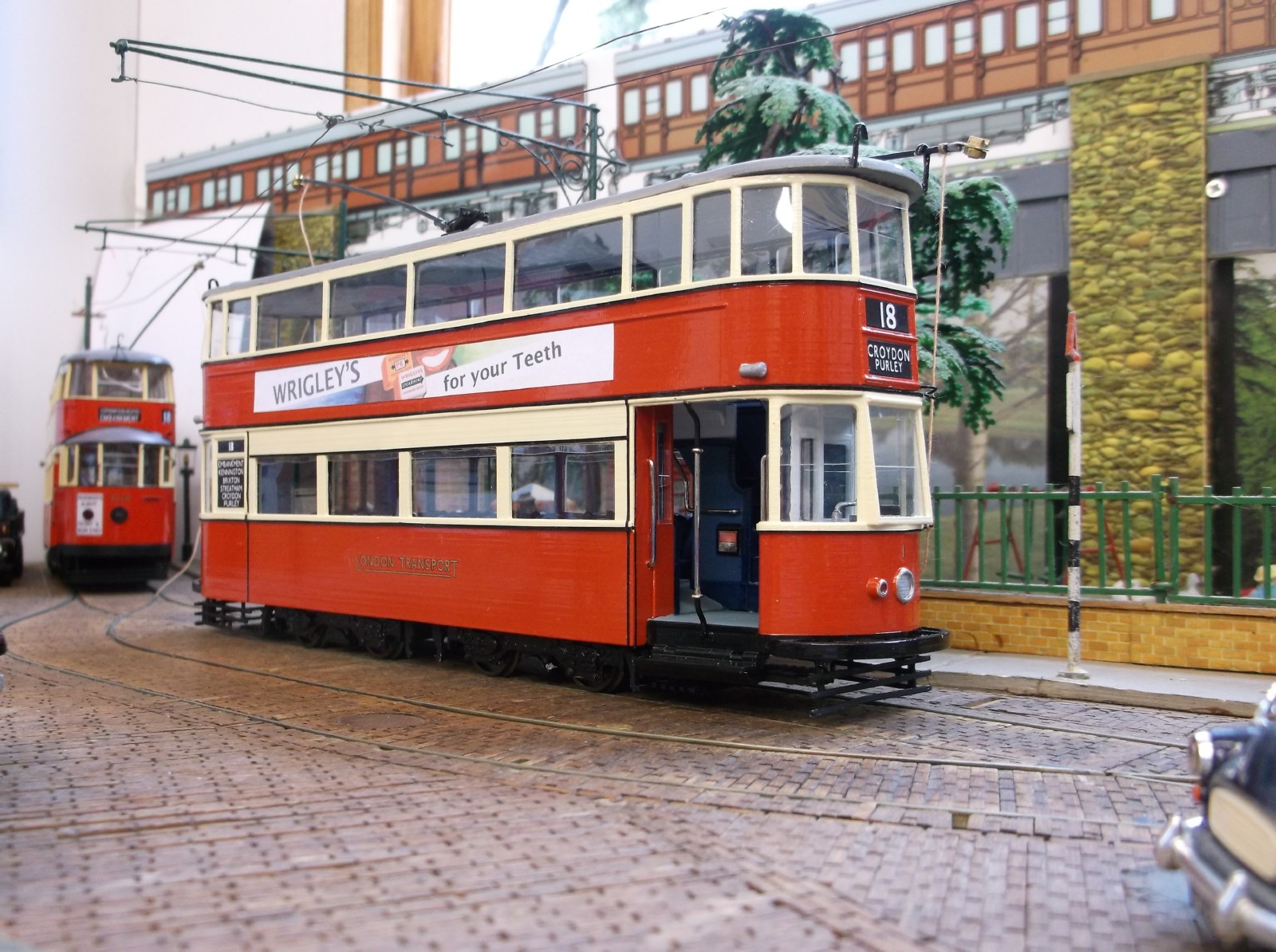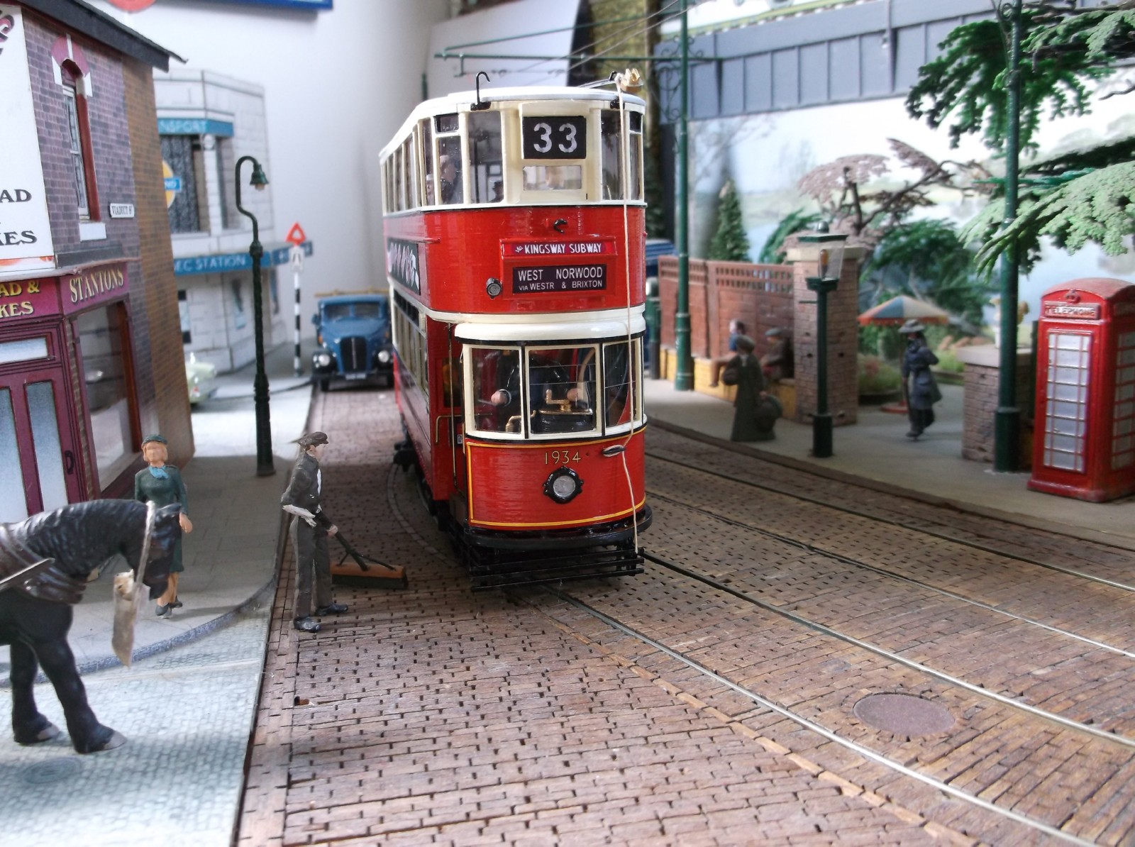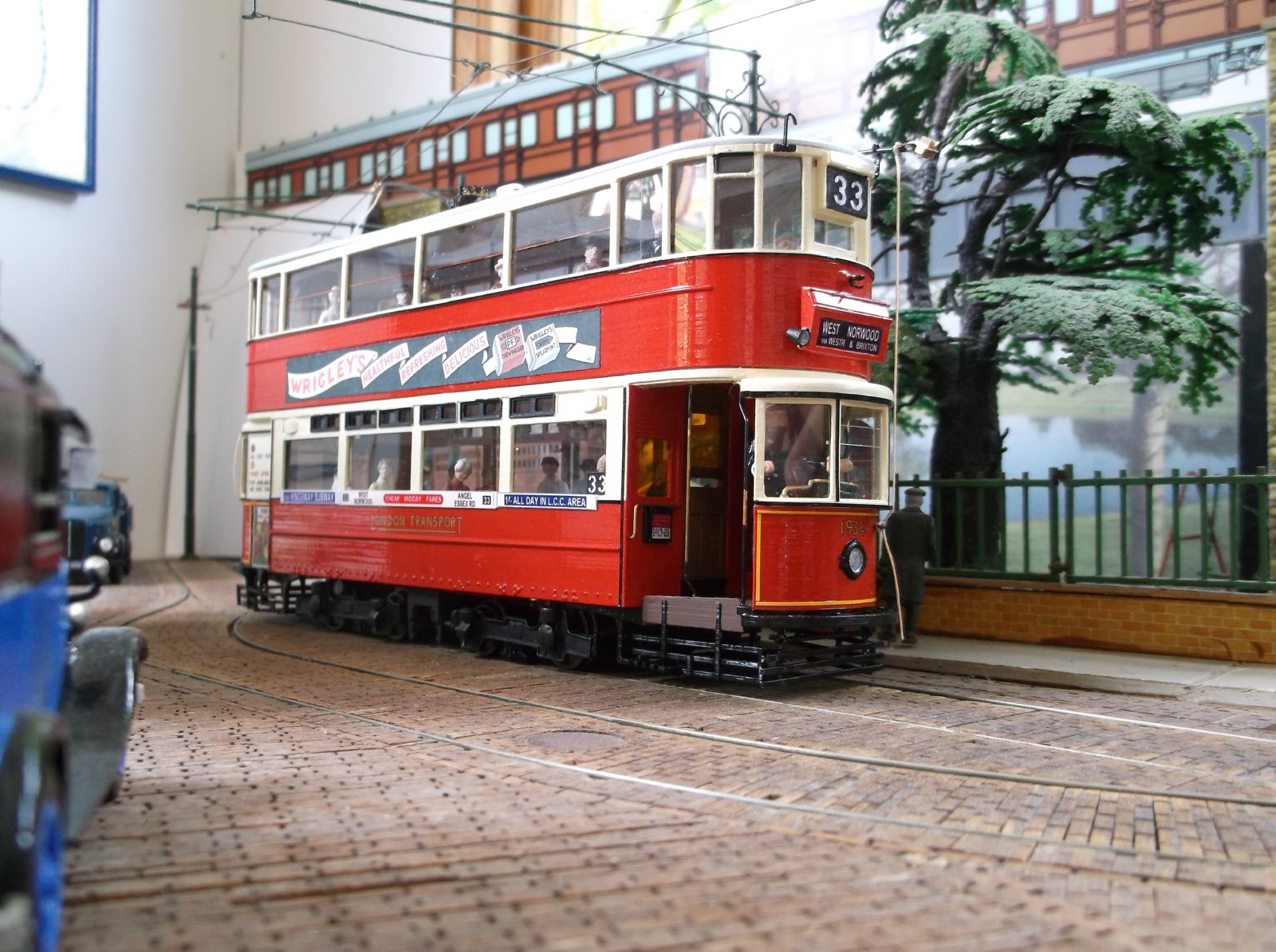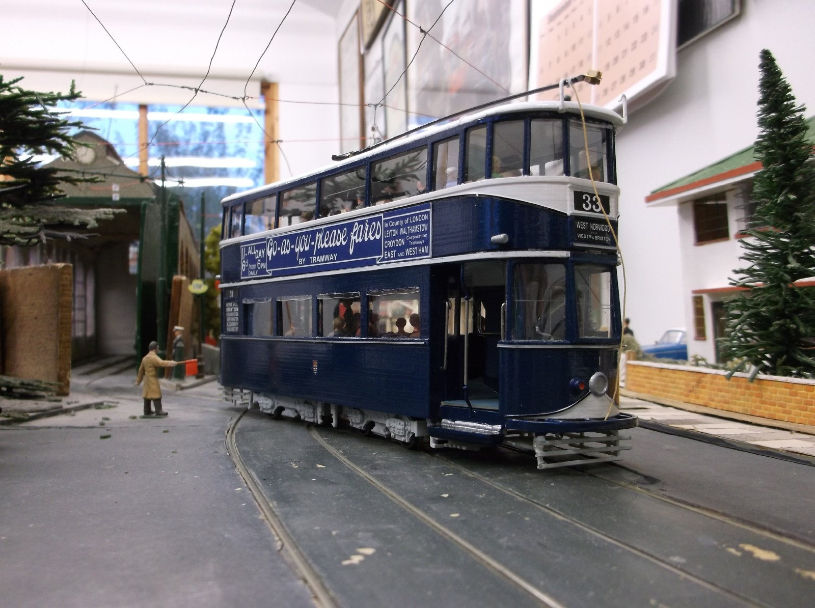 In 1930 the LCC built a modern prototype car with the fleet number 1 fitted with equal-wheel 4 motor trucks as depicted in the model shown. It was