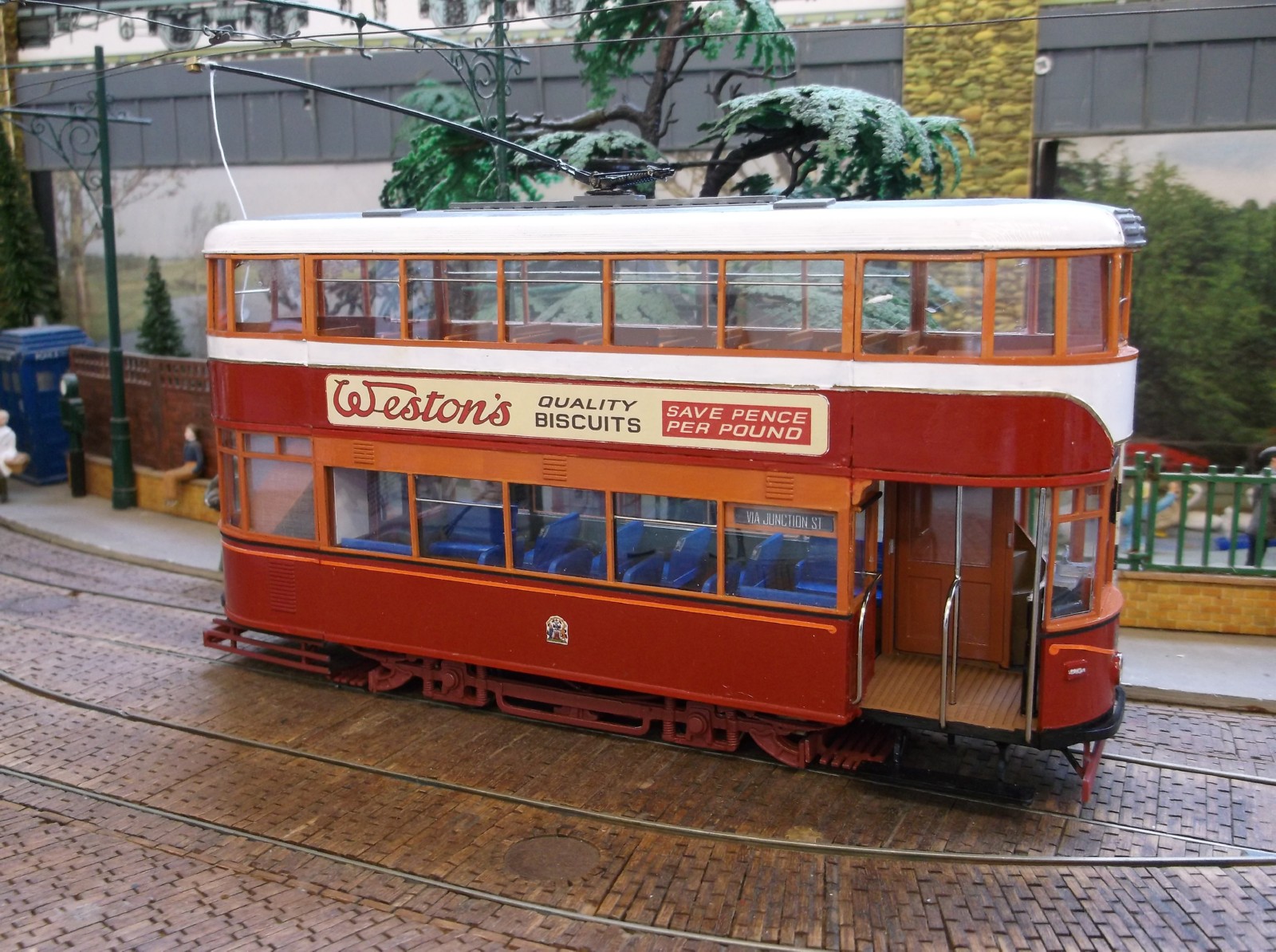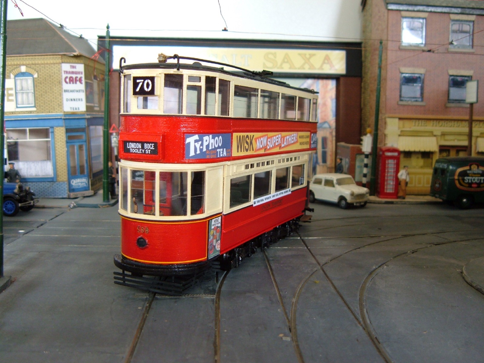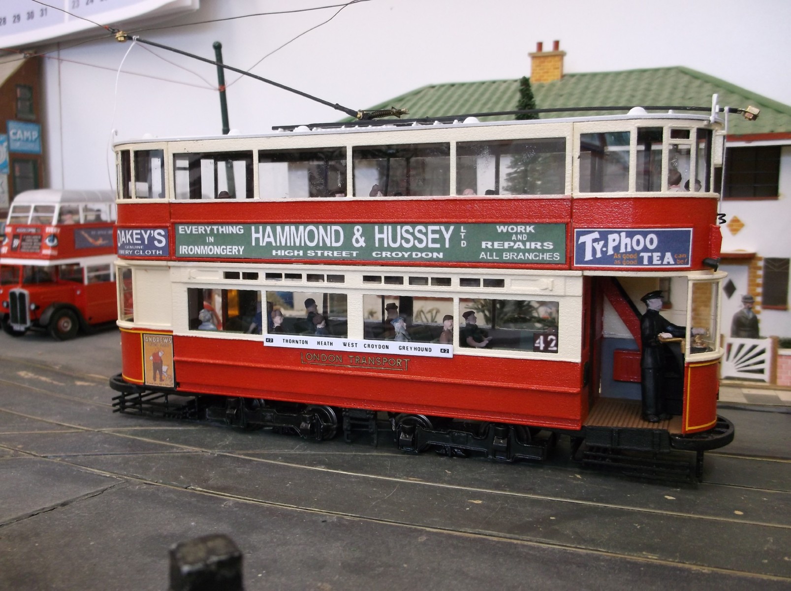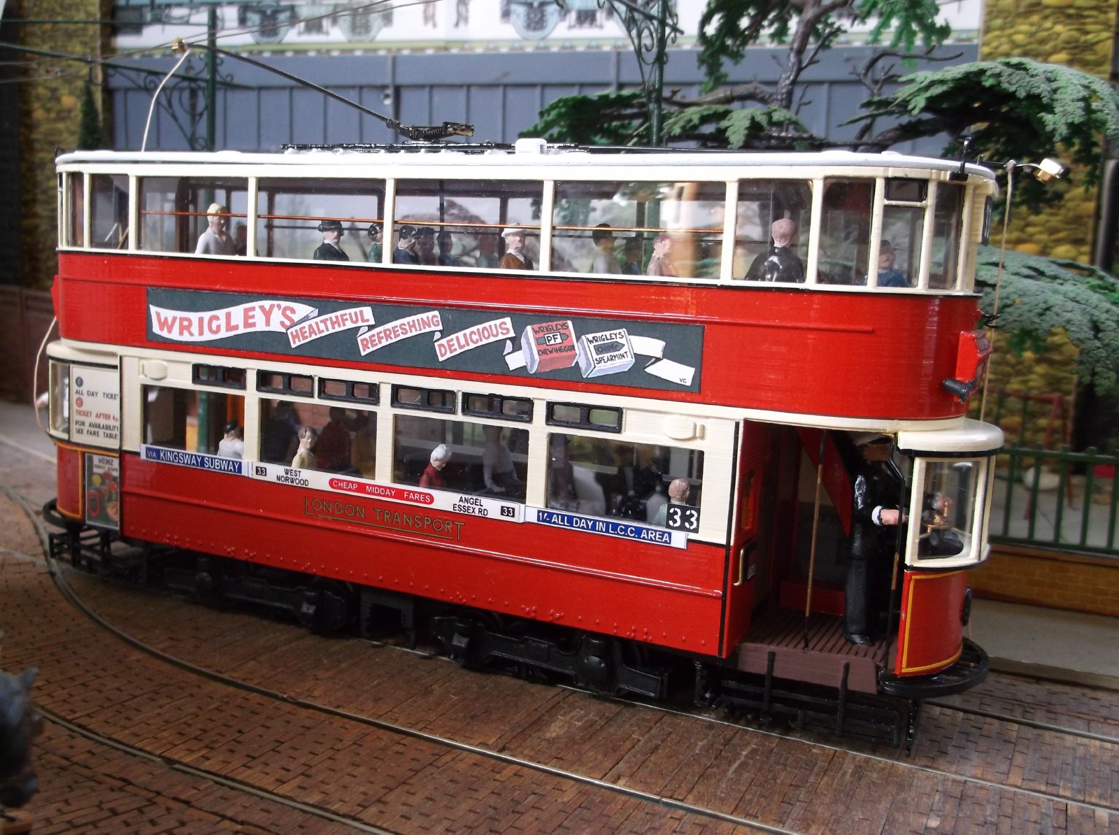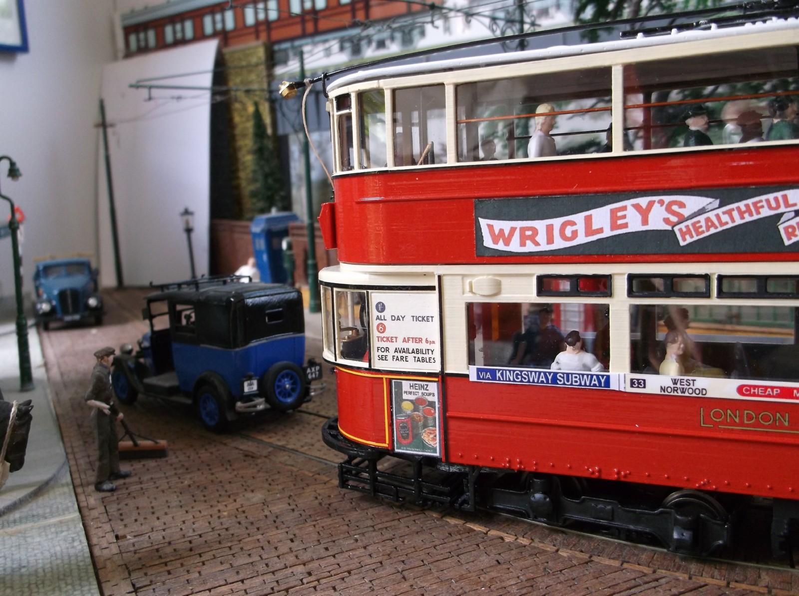 In 1930 the LCC built a modern prototype car with the fleet number 1 fitted with equal-wheel 4 motor trucks as depicted in the model shown. It was