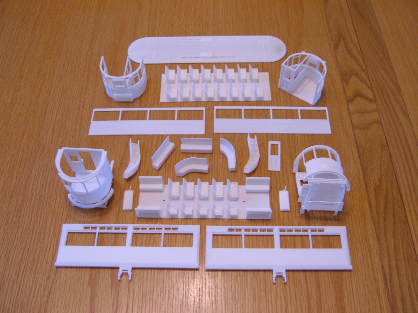 The 15 piece body kit is complete with every detail [not just a body shell] including from the roof down, seating, stairs, controllers and