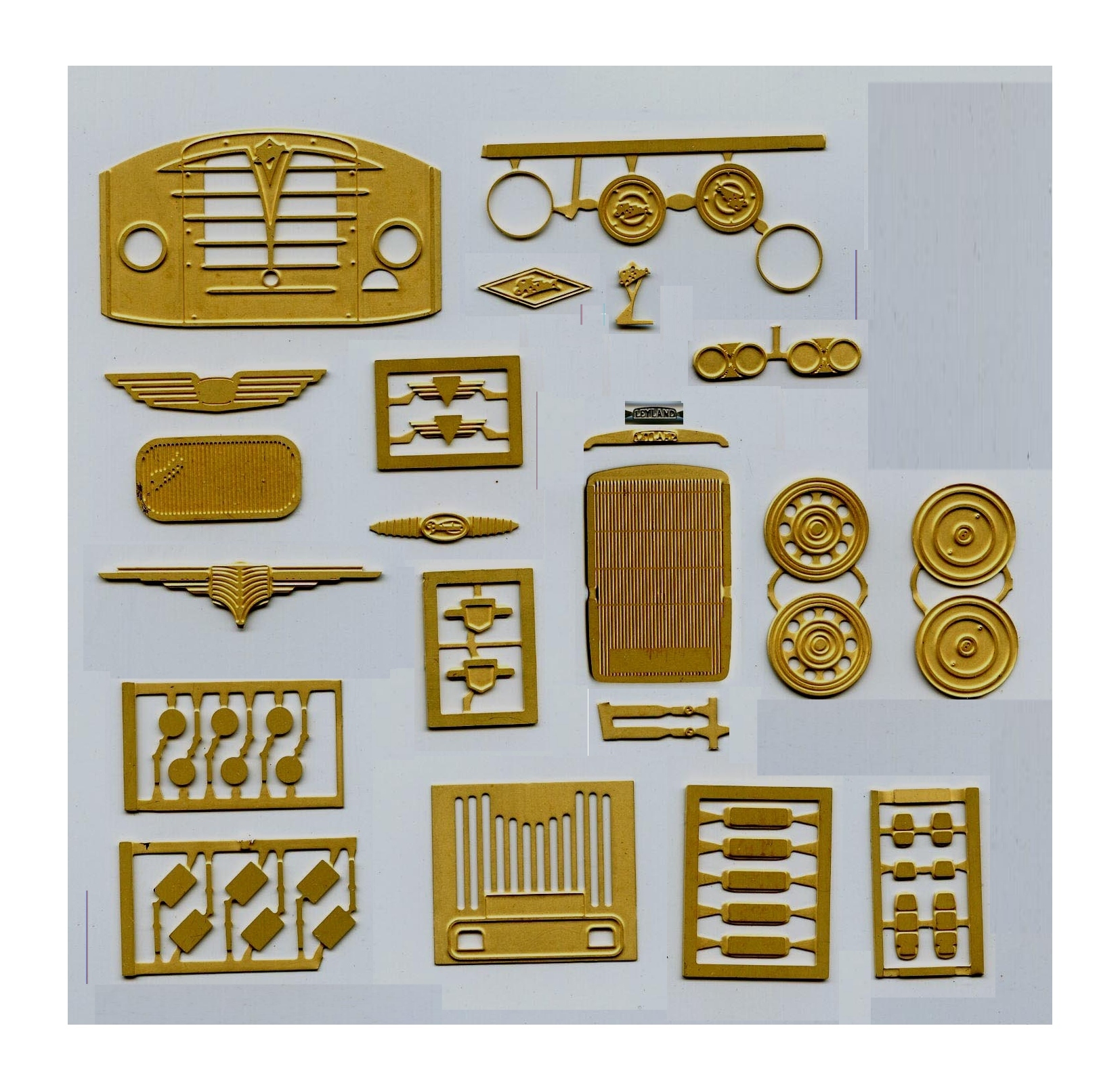 wheel trims; twin headlights, omo signs, side/rear lights set; all in brass.